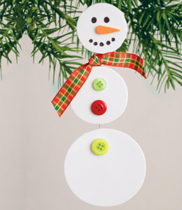 It doesn’t take a single flake to build this frosty character — you can round him up with white foam, buttons, and ribbon.