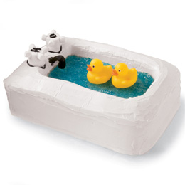 Spoon the Jiggler water into the basin and set the duck or ducks afloat.