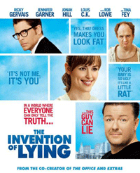 It’s a world where everyone tells the truth – and just about anything they’re thinking. Mark Bellison is a screenwriter, about to be fired. He’s short and chunky with a flat nose – a genetic pool that means he won’t get to first base with Anna, the woman he loves. At a bank, on the spur of the moment he blurts out a fib, with eye-popping results. Then, when his mother’s on her deathbed, frightened of the eternal void awaiting her, Mark invents fiction. The hospital staff overhear his description of Heaven, believe every word, and tell others. Soon Mark is a prophet, his first inventive screenplay makes him rich, and he’s basically a good guy. But will that be enough for Anna?
