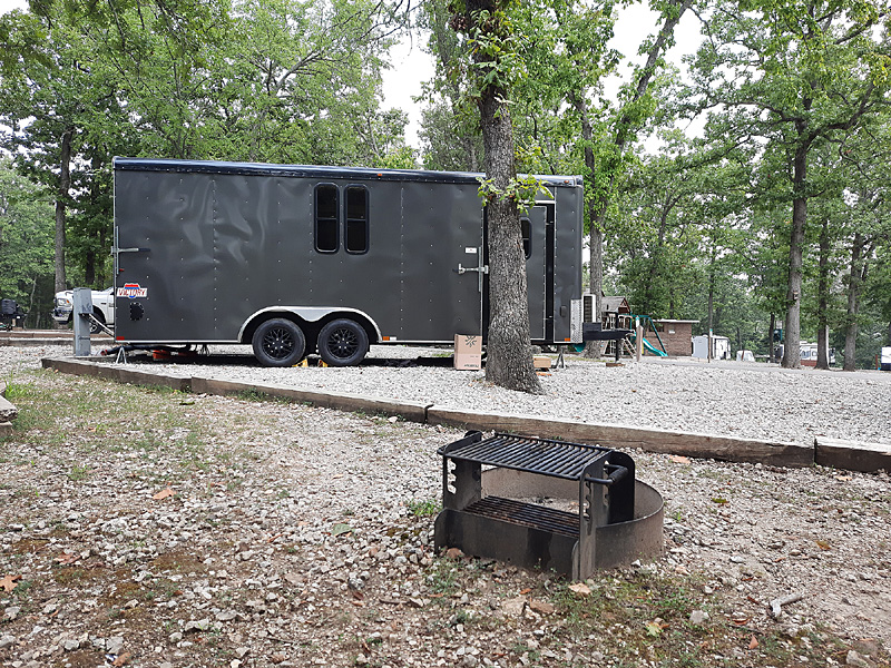 Our first camping trip together, (though technically this is not our camper’s first time going out, Kevin took LeRoy camping the third weekend of July), was to Port of Kimberling Marina just south of Branson, Missouri. We picked this campsite because it’s not far from where we live, about 90 minutes, and it’s located on a lake. We didn’t want to take it out too far our first time using it because we knew we would learn a lot from this experience and we didn’t want to be too far away from home in case something happened and we needed to cut our trip short.