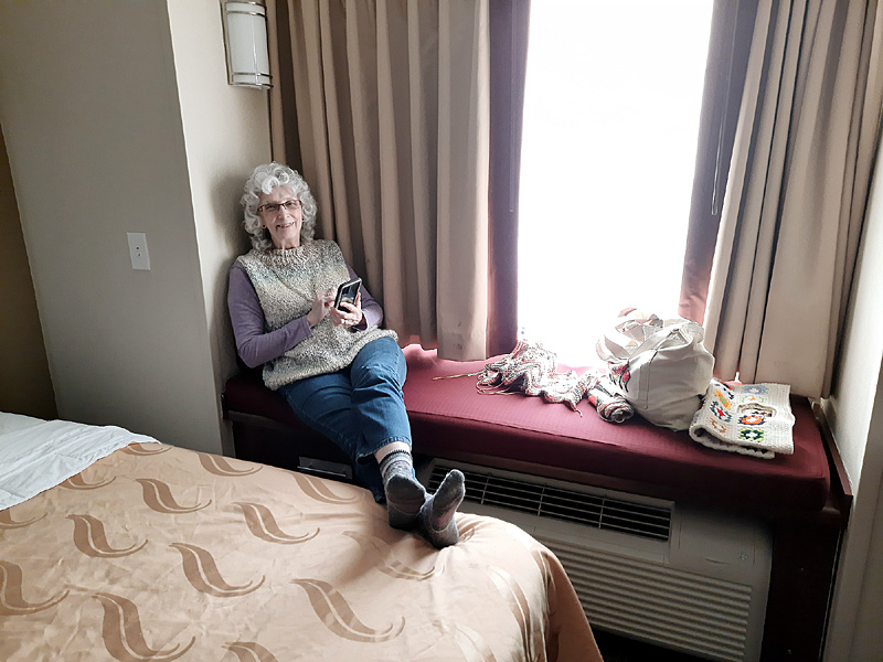 (As you can see, she brought her WIP, (work-in-progress) craft. Mom is NEVER without a WIP. You never know when you have time to craft!)