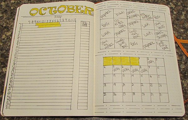 And my mood – meh. I like this tracker because I have a lot of moods – much more than just happy, sad, angry or meh. But I’m a bit bored with this tracker so I think I’m going to use a more traditional mood tracker next month.