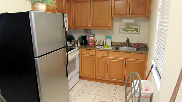 After hooking up the electricity, water and sewer, it was time to open the trailer. I held my breath. Would it look like total destruction? Did the fridge fall over? Did everything from the cabinets spill out? Was the TV broken?