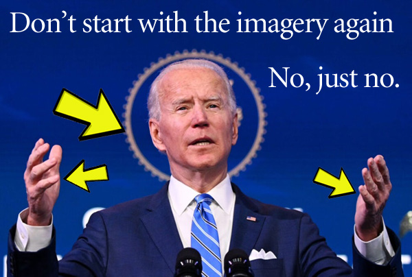 Can we NOT do this please? Let’s not start this nightmare of the next four years pretending, or portraying, Biden as a “god-like” entity like we did with Obama. Just as words can be manipulated, so can pictures and people are already too gullible as it is without making it seem like Biden is here to save us all.