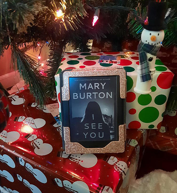 Yes – I took this picture in front of our Christmas tree. I thought it would be fun to take pictures of the title page on my Kindle around my house. And yes, my kindle is in a rose gold sparkly case. Also, I took this on my phone – I love my new(ish) phone!
