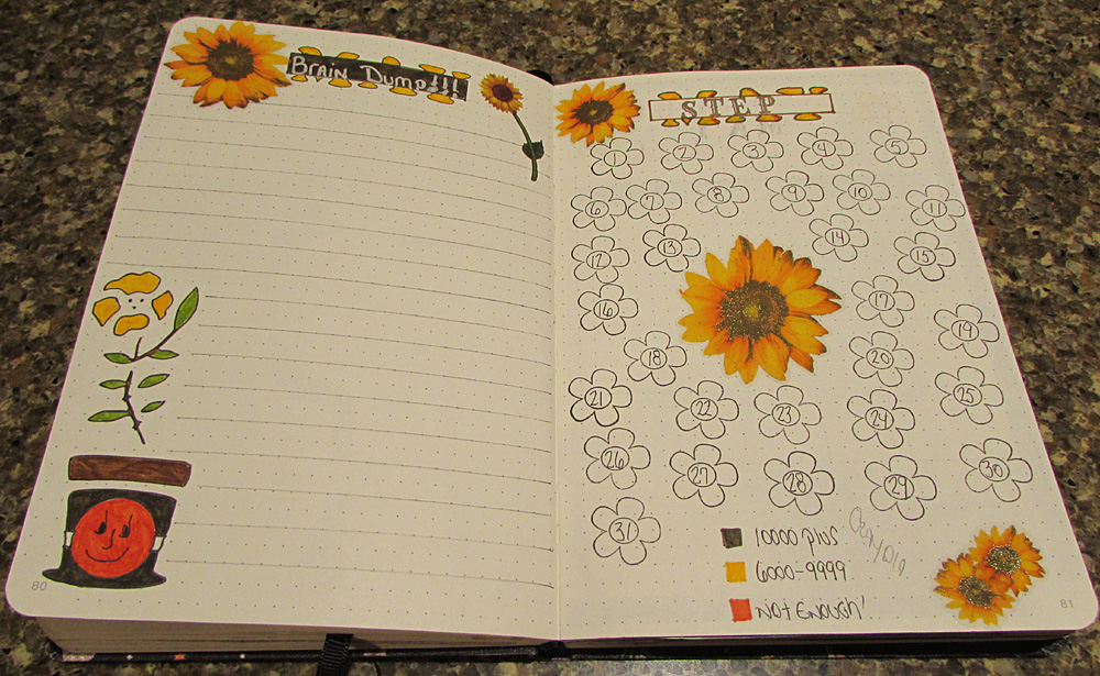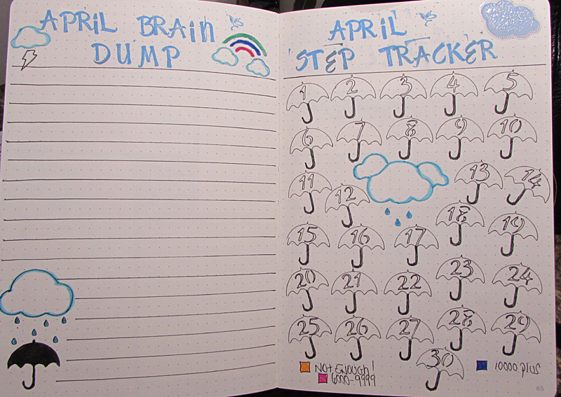 Here’s my brain dump and step tracker. I think these pages turned out cute-ish.