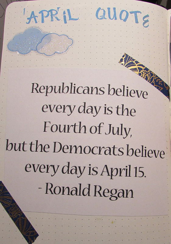 I have mixed feelings on these question pages. I type up a question/answer private message to be read by whomever is reading my Bujo, (after I’m dead, of course) and putting that piece of paper in the envelope and gluing it to my journal. It makes it bulky and that sort of bugs me, but I’m going to continue doing it for this year, at least. I’m not anything if not consistent … actually, I’m not consistent, evidenced by the spotty posts on this blog, but you know what I mean! Again, LOVE this stamp. I wish I had put more ink on it.