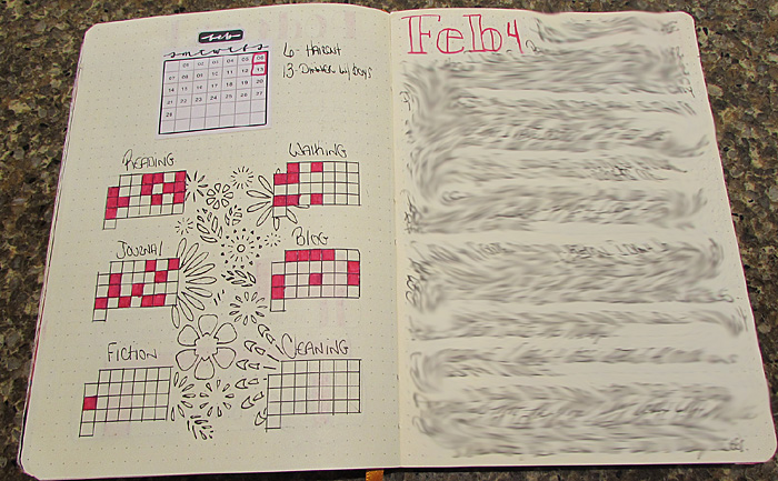 Yes. I’m still bullet journaling. And I’m not bored, in fact, I’m pretty fired up about this. I’m having a blast! I’ve found my groove and though it still looks like crap when compared to other bullet journalers out there, I’m okay with that. It works for me, I’m enjoying myself and it will be something fun to leave behind for future generations to make fun of. Ha!