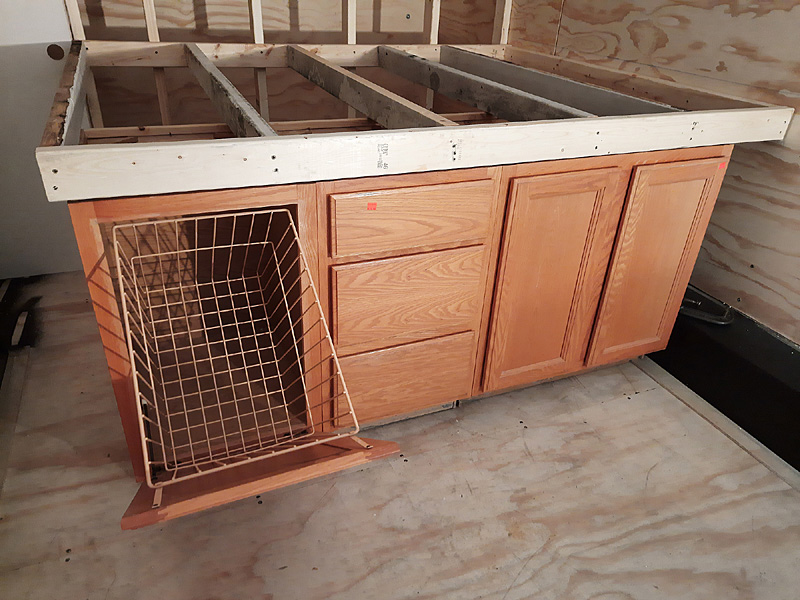 Let me just say, at the outset, that I’ve been ZERO help. It’s all been Kevin. LeRoy has helped but the majority of work has been done by Kevin. He has though long and hard about how he wants to configure everything and I’m really impressed with him! This is the first time he’s really done any carpentry and he has customized the pieces he bought, for pennies on the dollar at places like thrift stores and Habitat for Humanity, and made it work for the space. He has spent a lot of time on the kitchen and I couldn’t be happier.