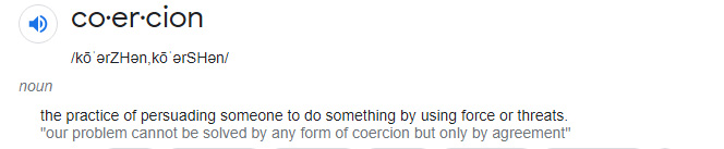 When you force people to do what you want and if they don’t you will penalize them in some way, that’s called coercion.